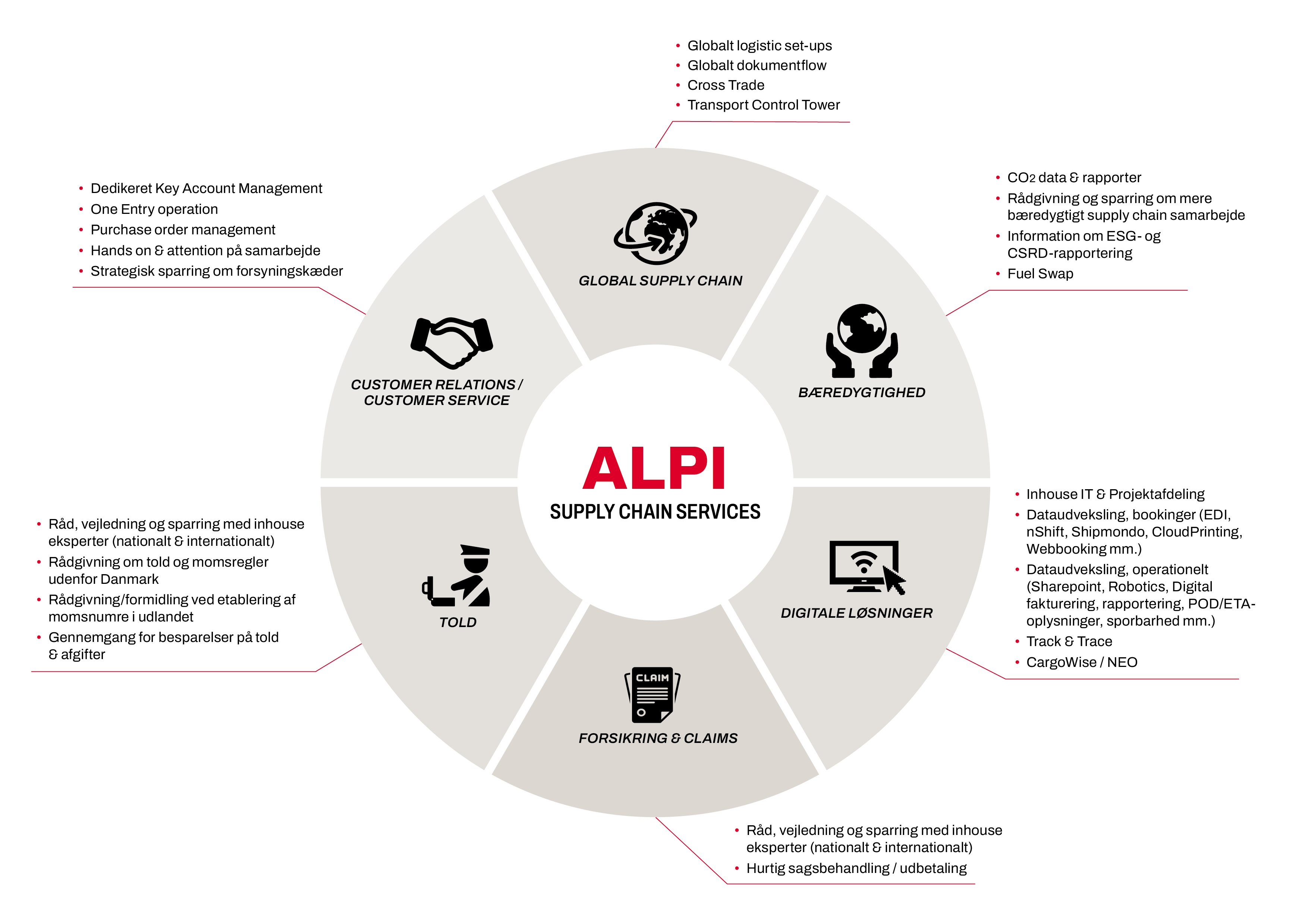 Supply Chain, transport og logistik bliver i øget grad komplekst. Det handler om andet end selve transporten. Det handler om mere end blot at flytte varer og produkter fra A til B. Hos ALPI har vi stor fokus på den know how og viden, samt de services der er nødvendige for et godt samarbejde.